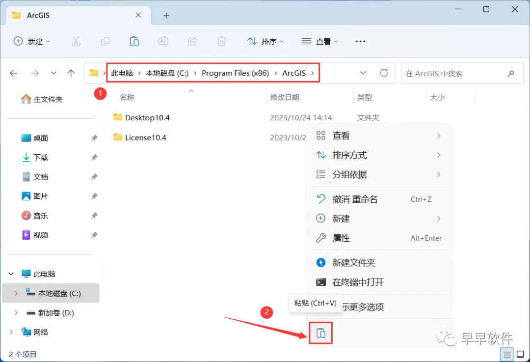 30、打开路径:C:\Program Files (x86)\ ArcGIS,再右键文件夹的空白处,点击【粘贴按钮】