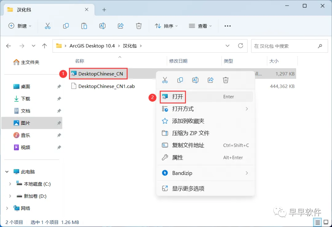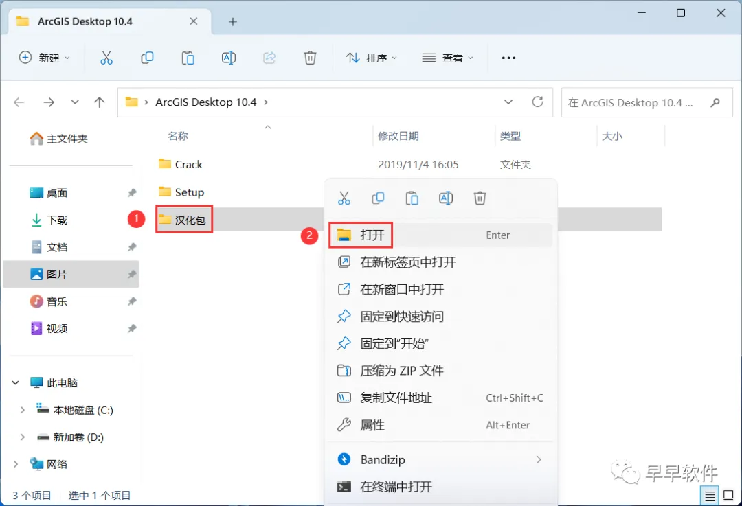 33、回到ArcGIS Desktop 10.4文件夹,找到【汉化包】文件夹,右键【打开】它