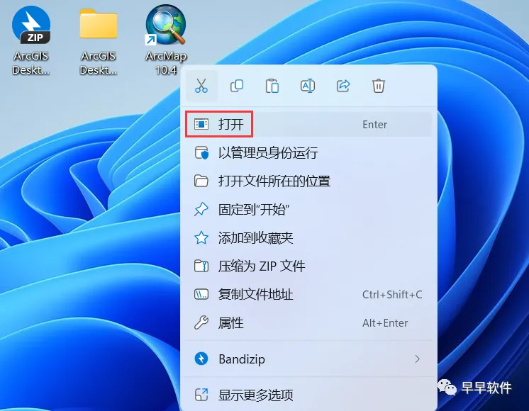 37、回到桌面,右键桌面上的【ArcMap 10.4软件图标】,点击【打开】