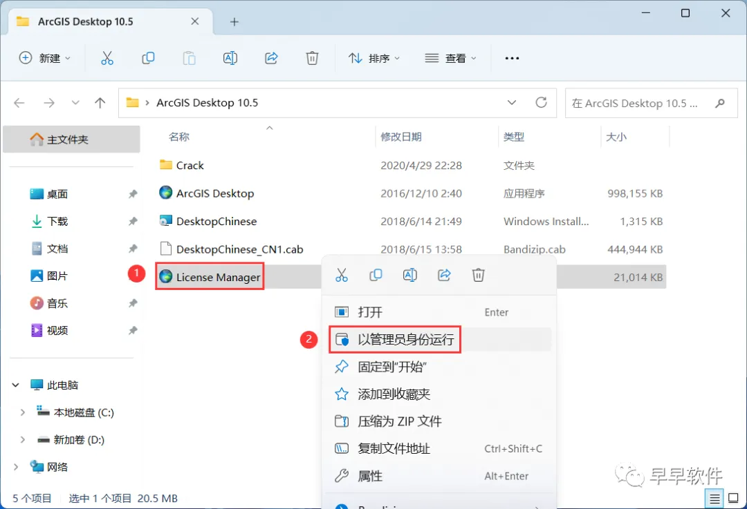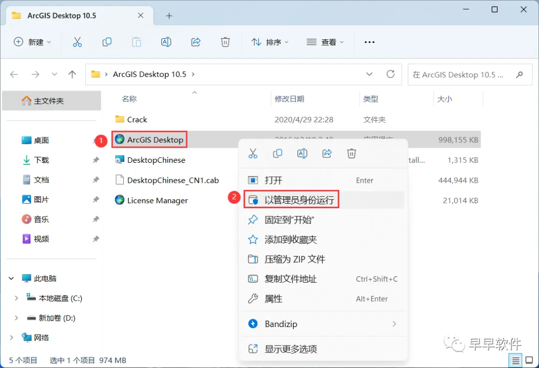 14、回到ArcGIS Desktop 10.5文件夹,找到【ArcGIS Desktop】应用程序,右键选择【以管理员身份运行】它