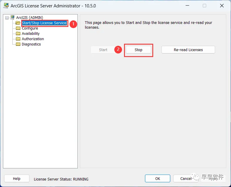 12、点击【Start/Stop License Service】,再点击【Stop】