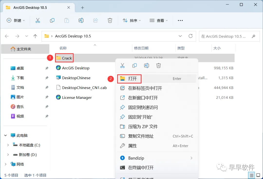 27、回到ArcGIS Desktop 10.5文件夹,找到【Crack】文件夹,右键【打开】它