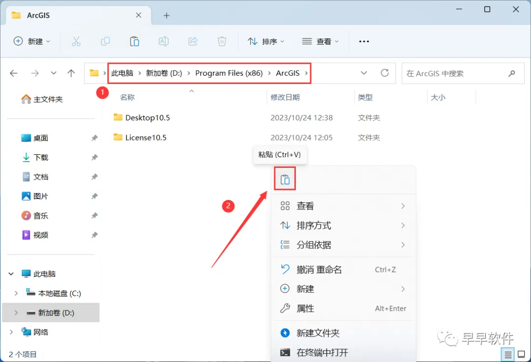 29、打开路径:D:\Program Files (x86)\ ArcGIS,再右键文件夹的空白处,点击【粘贴按钮】