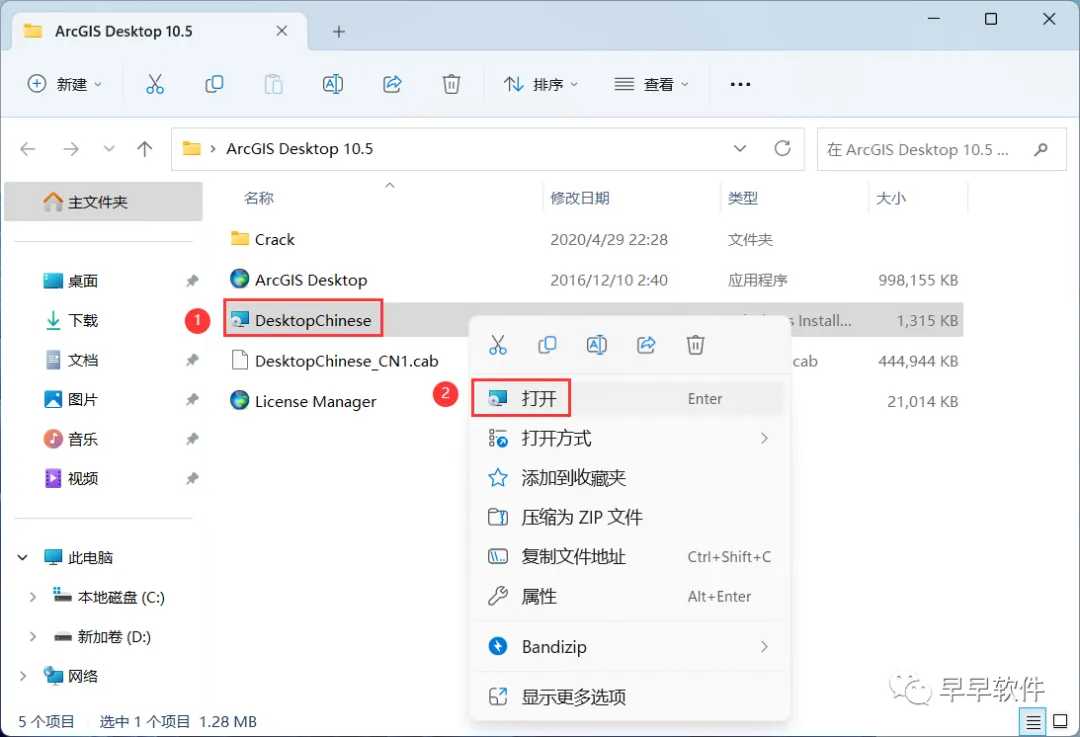 31、回到ArcGIS Desktop 10.5文件夹,找到【DesktopChinese】程序,右键【打开】它