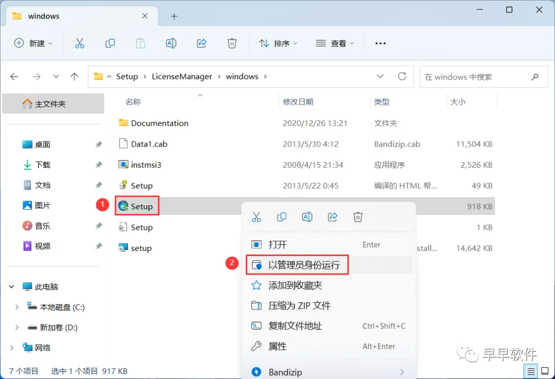 5、找到【setup】应用程序,右键选择【以管理员身份运行】它