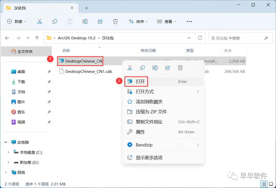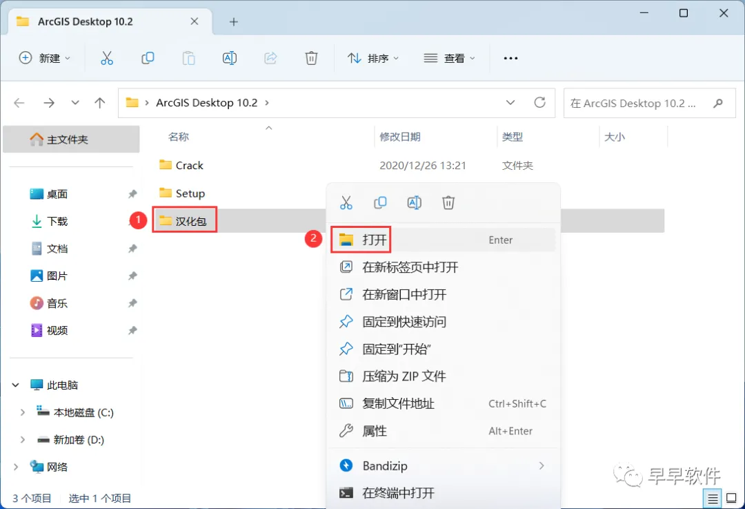 27、回到ArcGIS Desktop 10.2文件夹,找到【汉化包】文件夹,右键【打开】它