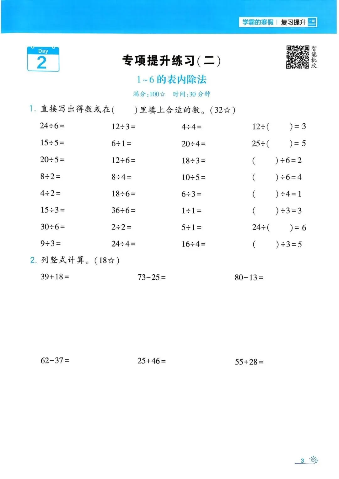【免费下载】1-6年级数学人教版《学霸寒假计算+思维大通关》| 可下载打印