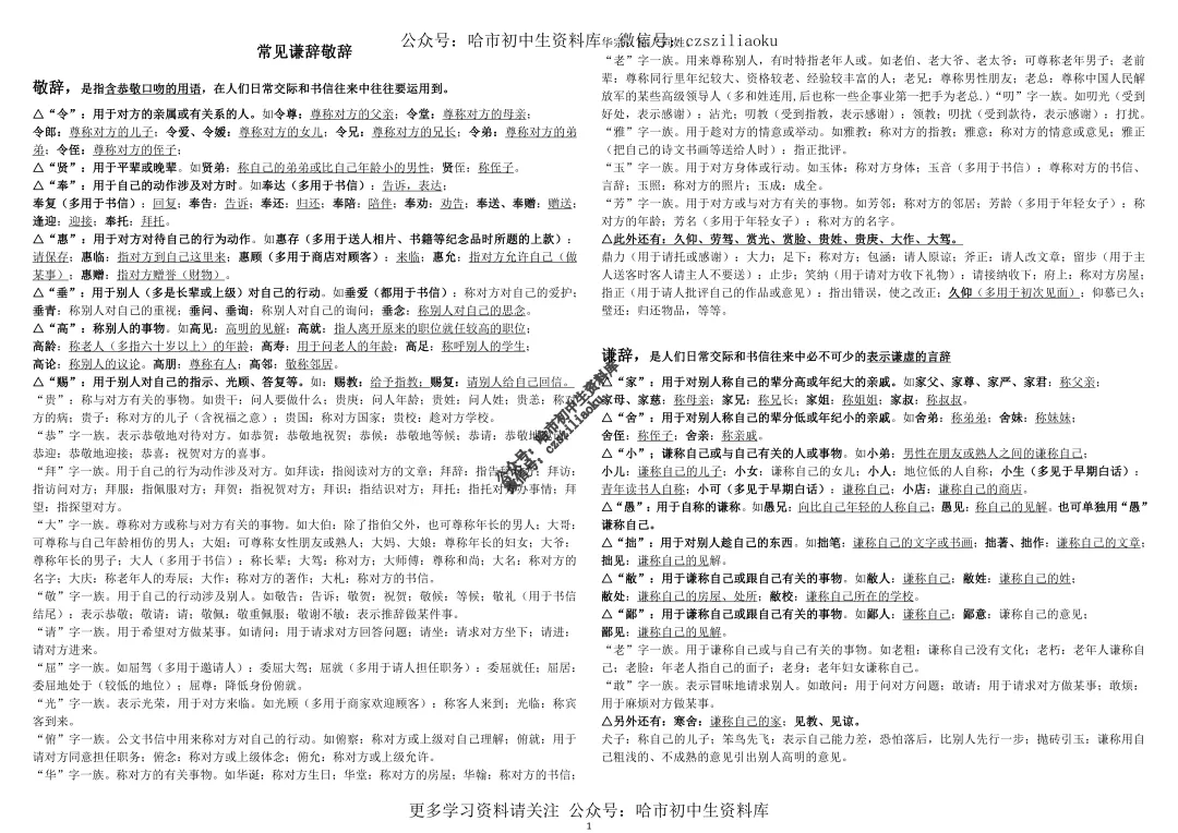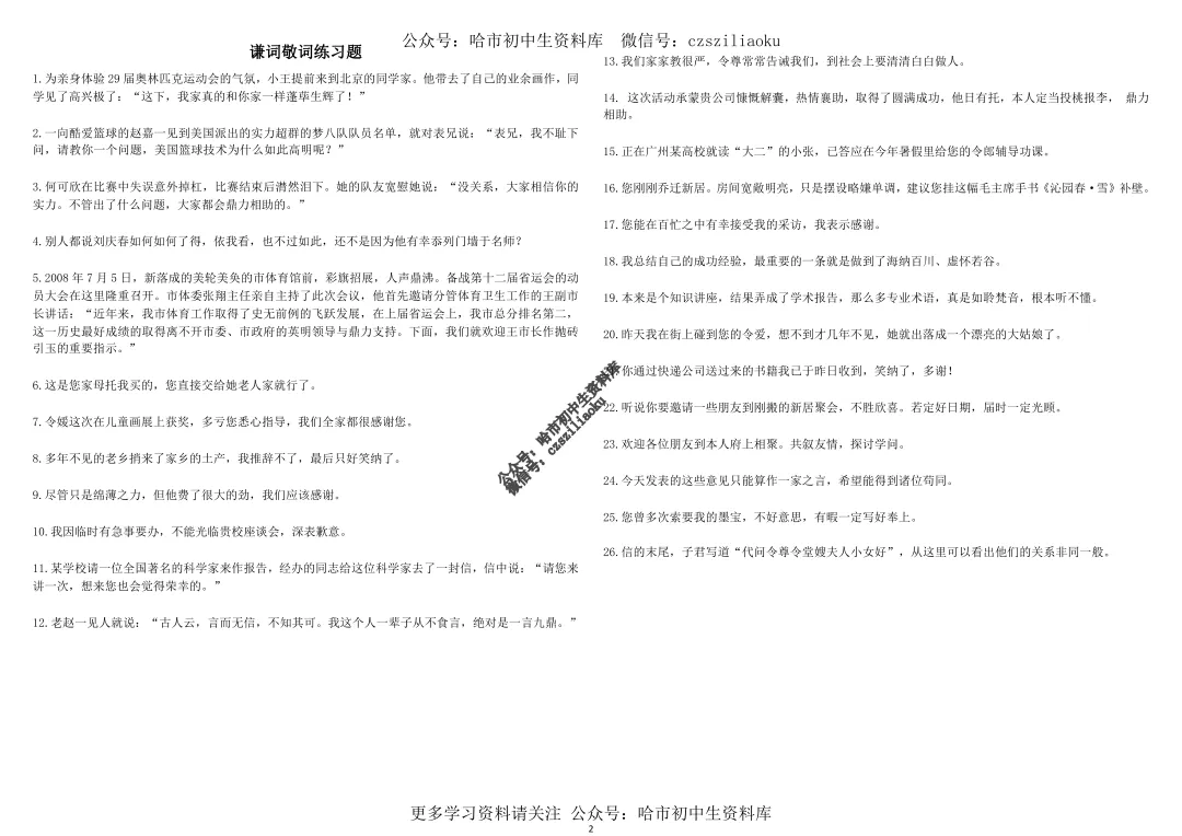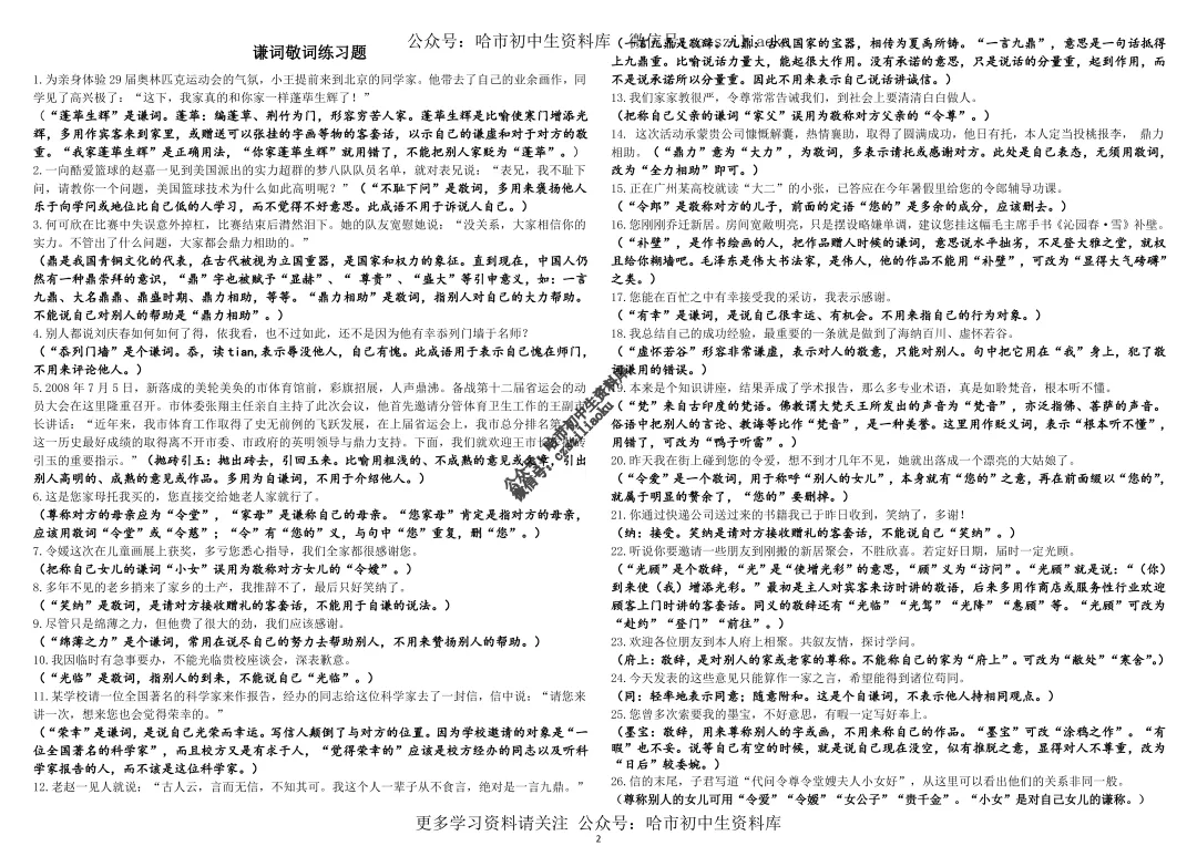 >初中语文·谦词敬词练习题+答案(免费下载)