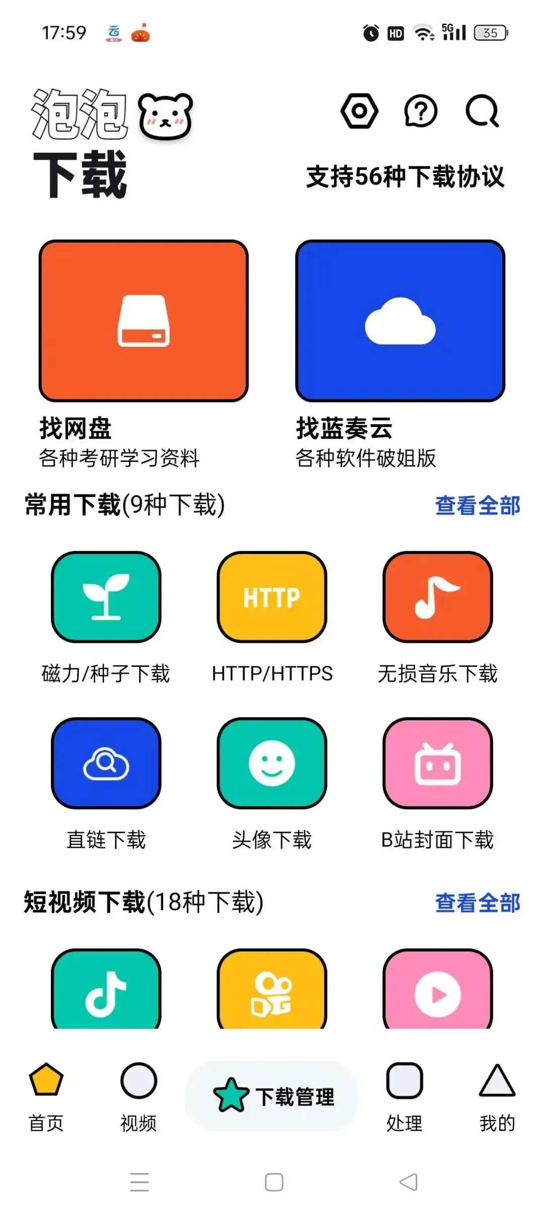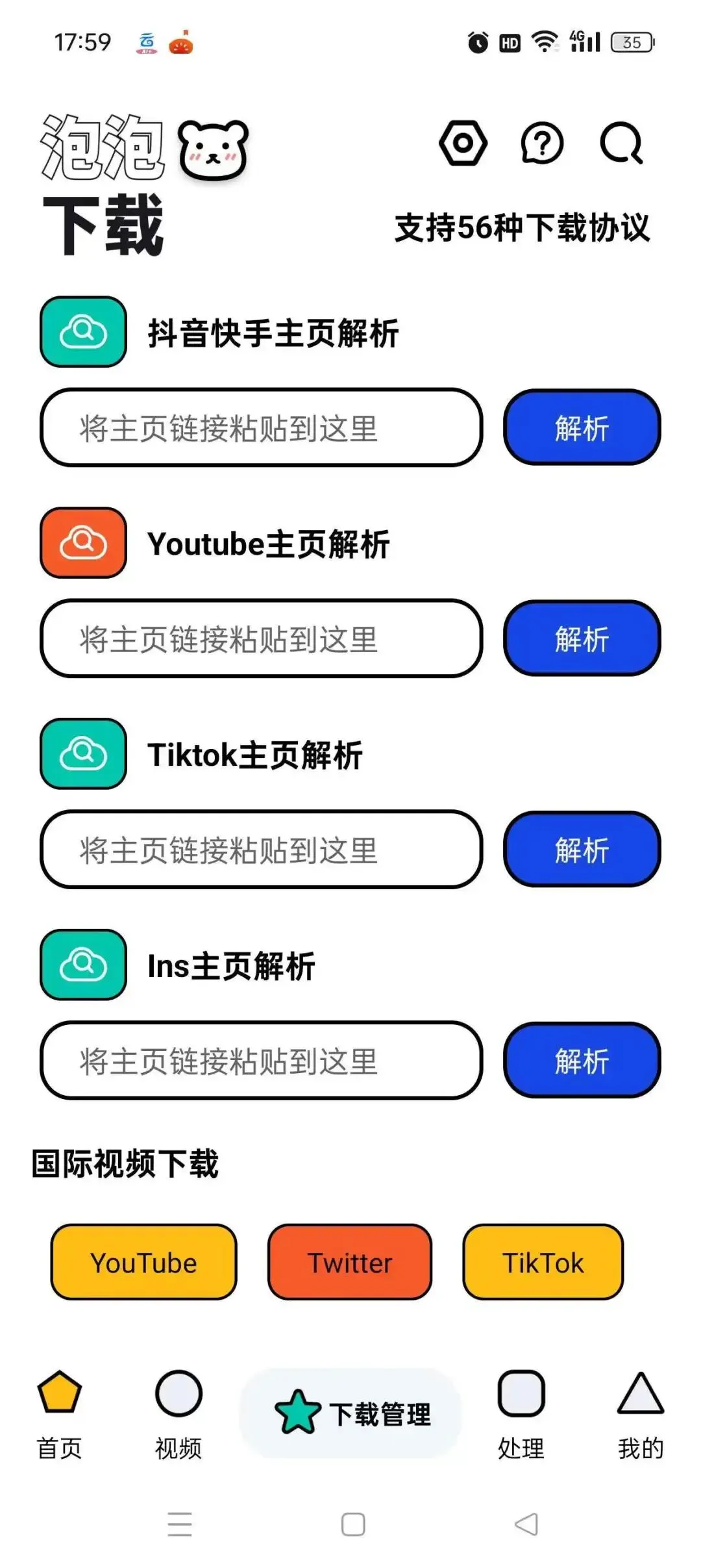 一提到ci力,各位老司机都露出了会心一笑,本期分享的【泡泡熊下载】就是一款功能强大的ci力下载工具,内置56种不同的下载协议,不同于某雷的各种会员限制,这款应用是完全免费的,不限速度,并且还可以下载短视频平台的各种精彩视频,只需复制视频链接即可下载,自带去水印功能,同样是一个搬运好手!