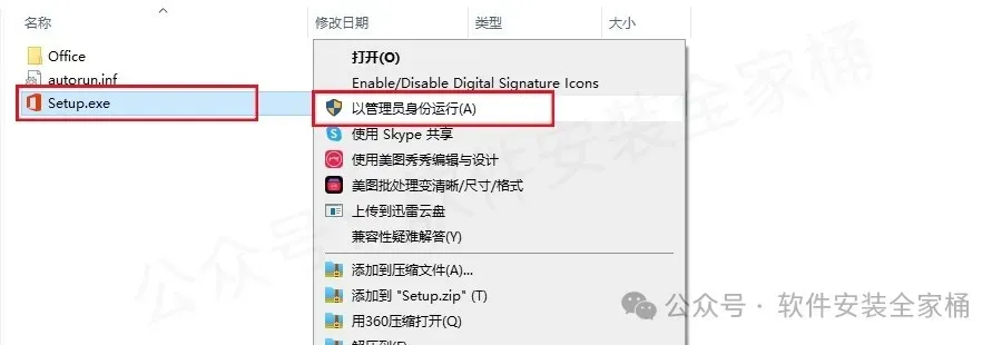 4.鼠标右击【Setup】安装程序,选择【以管理员身份运行】。