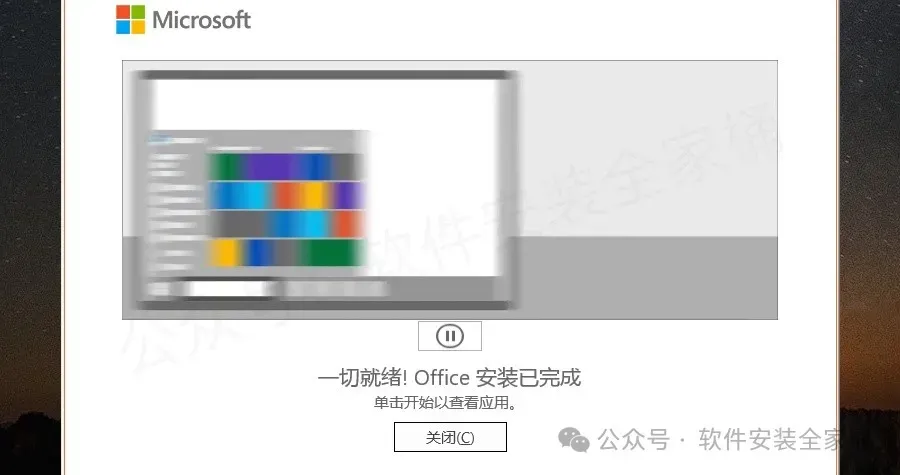 5.安装进度走完后,点击【关闭】。