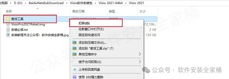 6.返回到解压的【Visio 2021】文件夹中,然后打开【激活工具】文件夹。