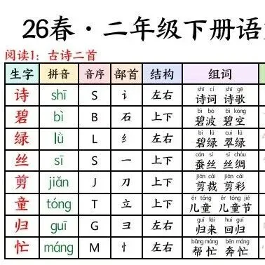 - 内容全面: 包含每个生字的拼音、组词、笔画、部首、结构。