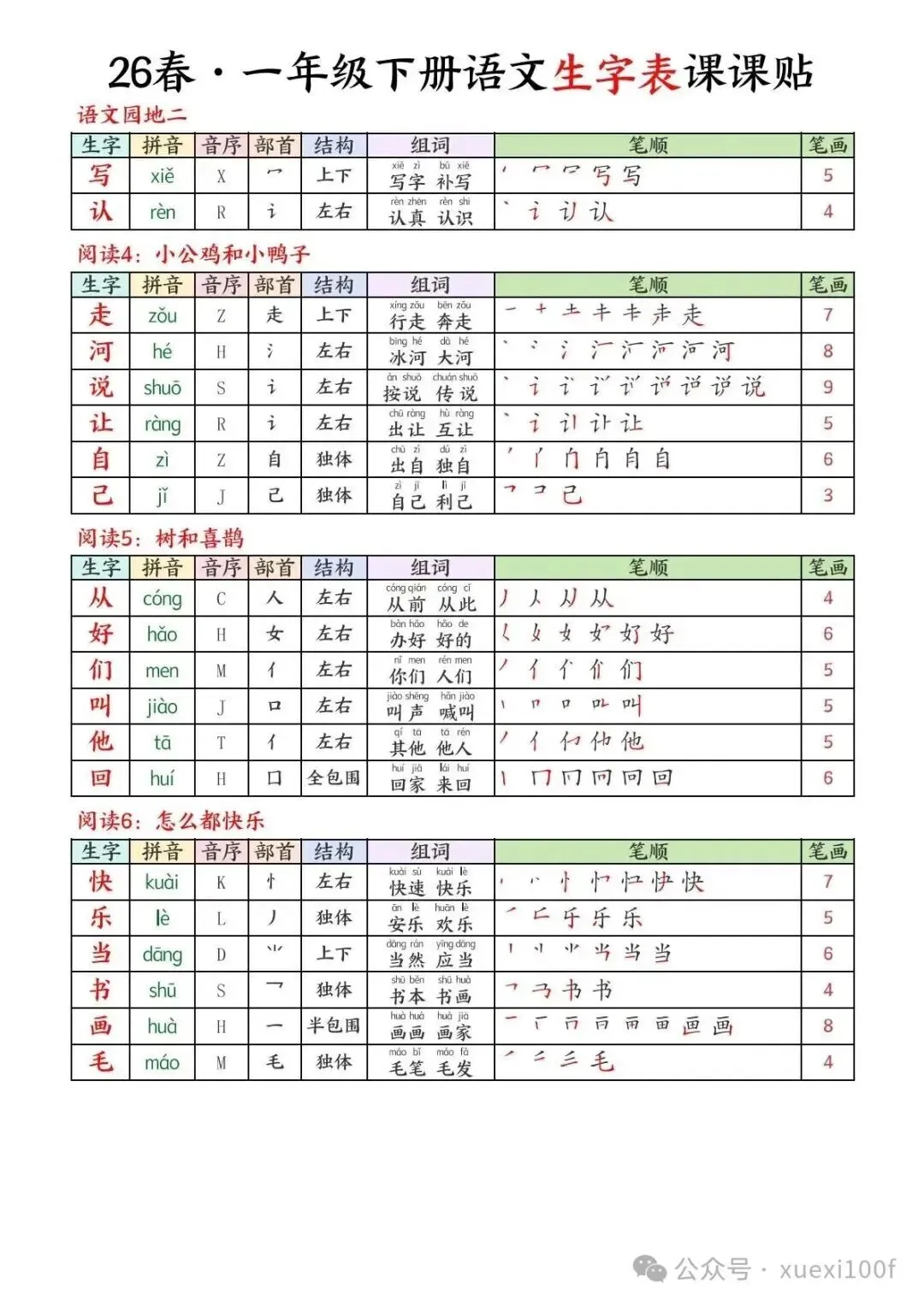 本次分享的是**《2026春人教部编版1-6年级下册语文生字表课课贴》**,它是一套非常全面且实用的学习工具,涵盖了小学阶段所有的生字知识点。