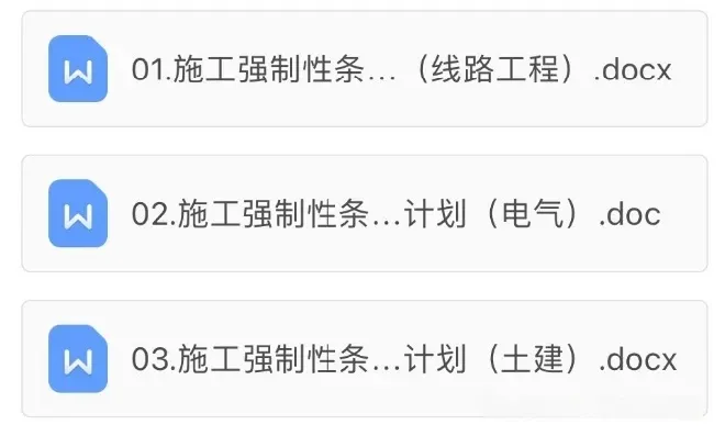 >【免费下载】Word版打包,线路工程强制性条执行计划(线路+电气+土建)合集!