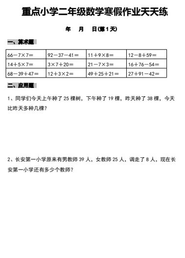 《寒假作业每日打卡》1-6年级(语文 数学)