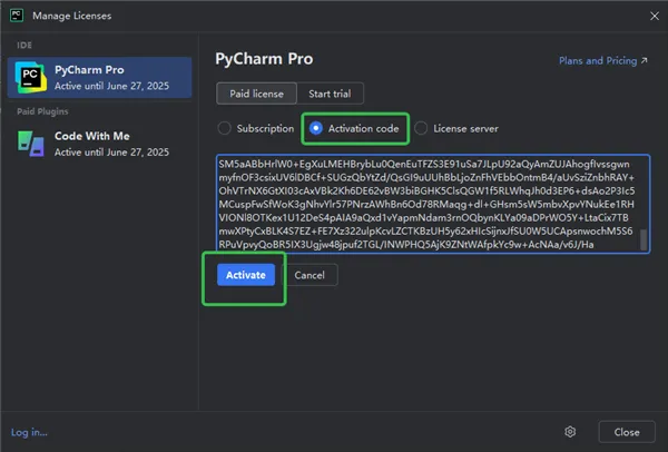 20、选择【Activation code】,将激活码复制过去,点击【Activate】。