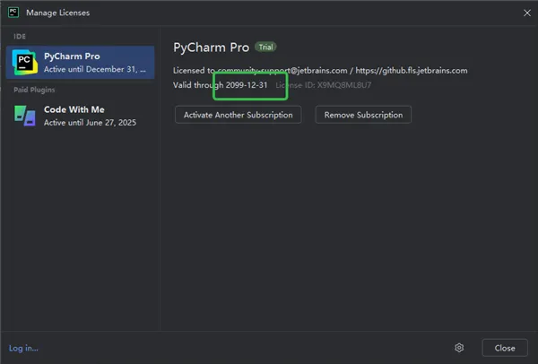 21、激活成功,有效期为2099-12-31,此时用户便可以免费使用JetBrains PyCharm编程软件。