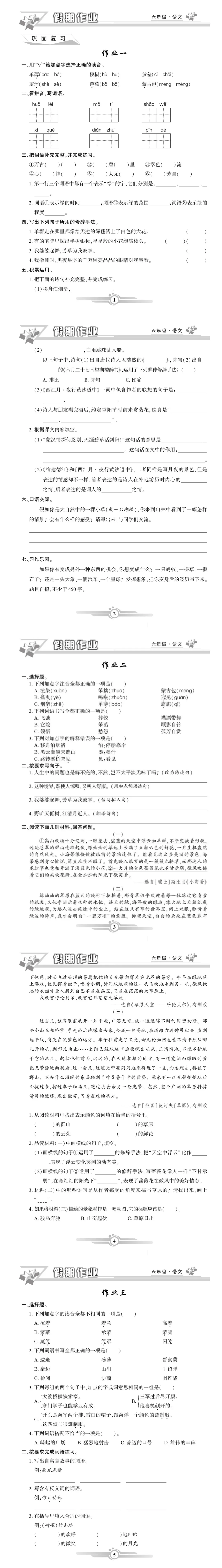 >26年春新版六年级语文寒假作业每日一练(免费下载)