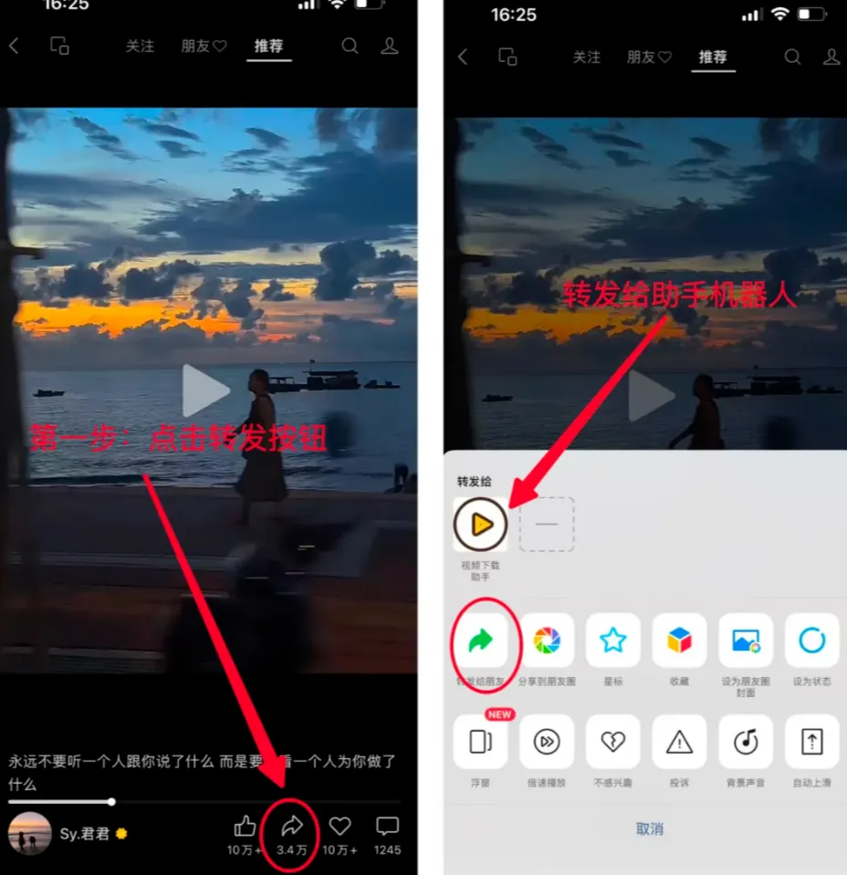 打开视频号视频,点击下方的分享按钮,把视频转发分享给下载助手机器人当视频号下载助手收到你发的视频号后,它会自动进行解释,大概2-5秒就会给你放回一个下载小程序,这时候你只需要点击进入就可以下载了。🎉 下载完成后,视频会自动保存到你的手机相册,打开相册就能看到啦!