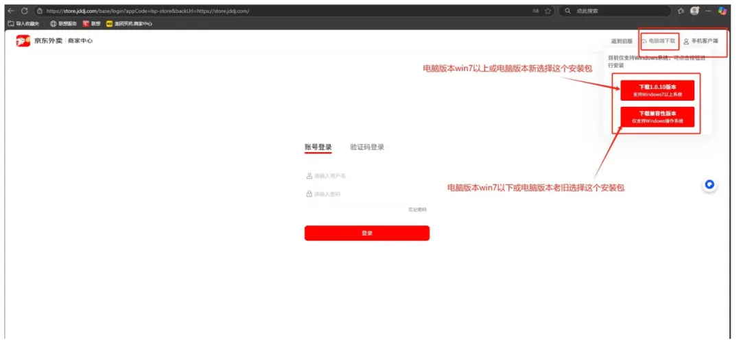 电脑客户端分为正式版和兼容版,如果商家电脑配置较高,可使用第一个正式版,如电脑较为老旧,建议下载兼容版