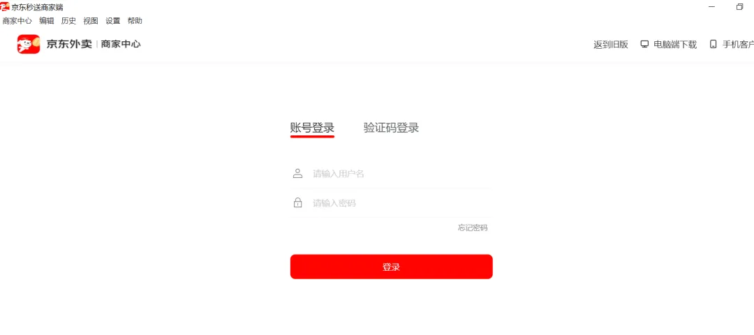 第一步,在电脑上打开浏览器,在地址栏输入网址:store.jddj.com,敲回车键,进入商家后台登录页面,右上角点击下载电脑客户端。