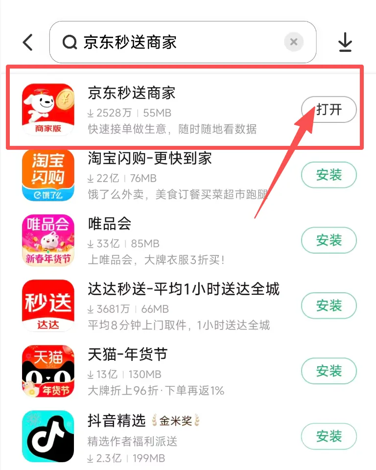 “京东秒送商家”,点击“安装”,即可下载到手机上,输入账号+密码,可进行登录,需要注意的是,手机端的功能不全,建议日常操作使用电脑网页解决。