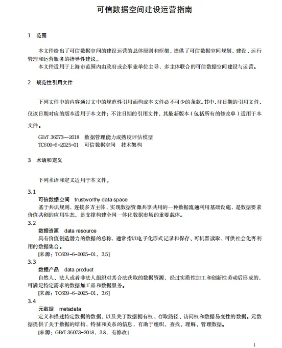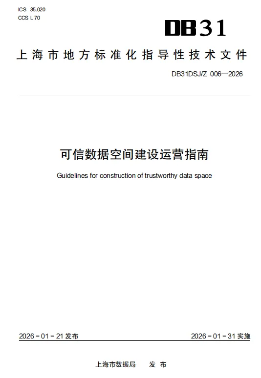 《可信数据空间建设运营指南》(DB31DSJ/Z 006—2026)是由上海市数据局发布并于2026年1月31日起实施的地方标准化指导性技术文件,旨在贯彻落实国家数据局《可信数据空间发展行动计划(2024—2028年)》,为上海市范围内政府或企事业单位主导的多主体联合可信数据空间建设提供系统性操作指引。