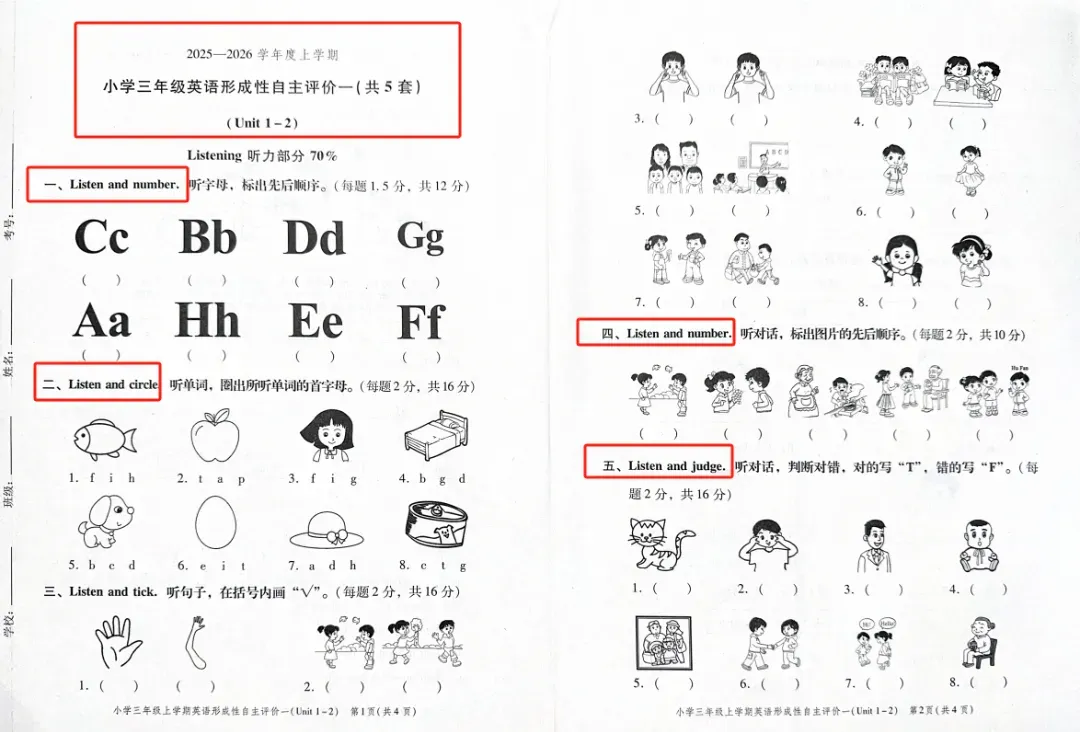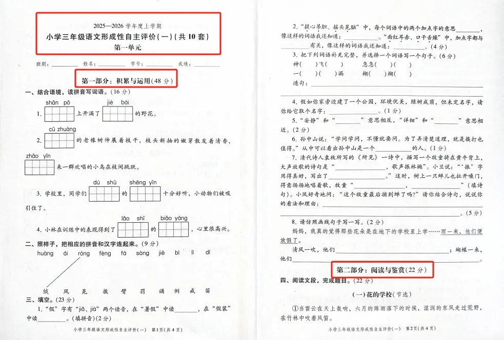 2025-2026年 小学形成性自主评价卷