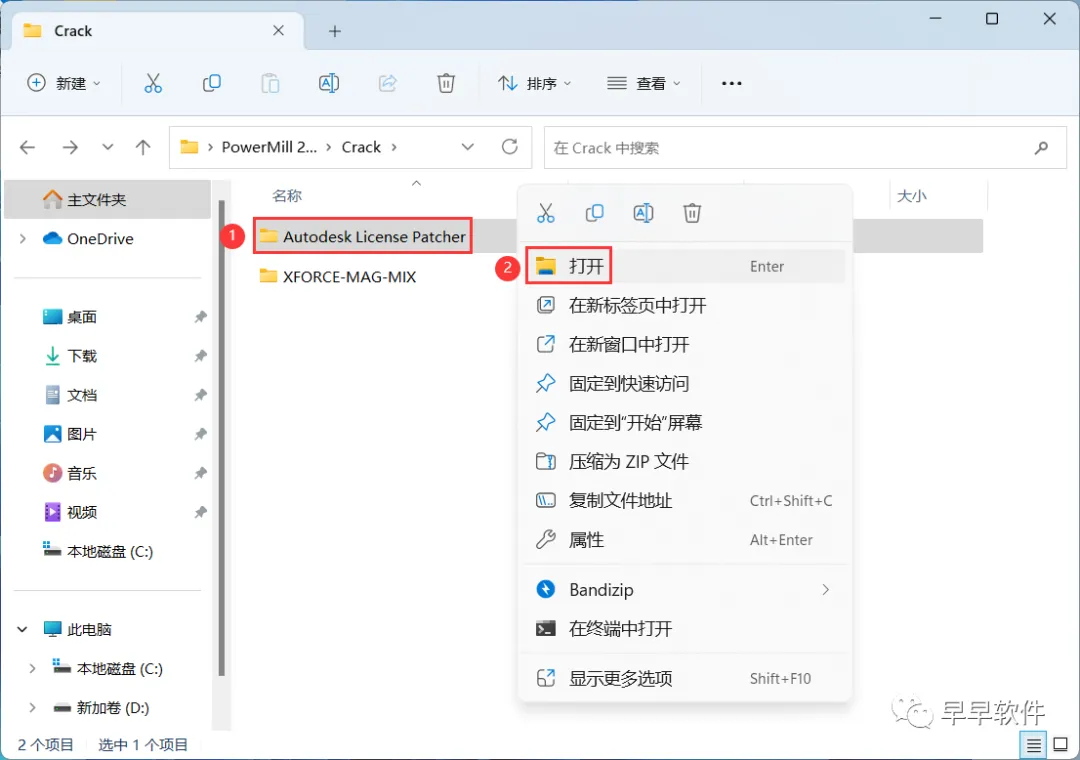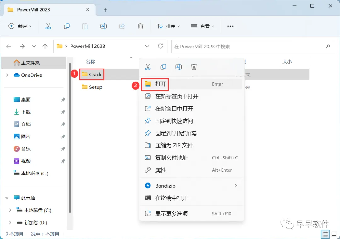 10、回到PowerMill 2023文件夹,找到【Crack】文件夹,右键【打开】它