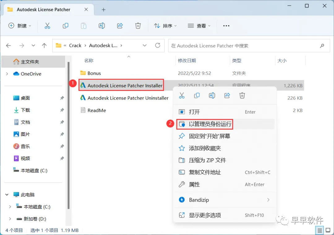 12、找到【Autodesk License Patcher Installer】应用程序,右键选择【以管理员身份运行】它