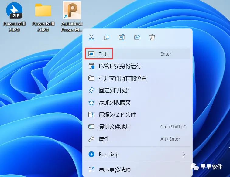 10、回到桌面,右键桌面上的【PowerMill 2020软件图标】,点击【打开】