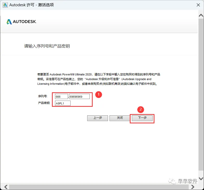 15、序列号输入:666-69696969,产品密钥输入:A9PL1,再点击【下一步】
