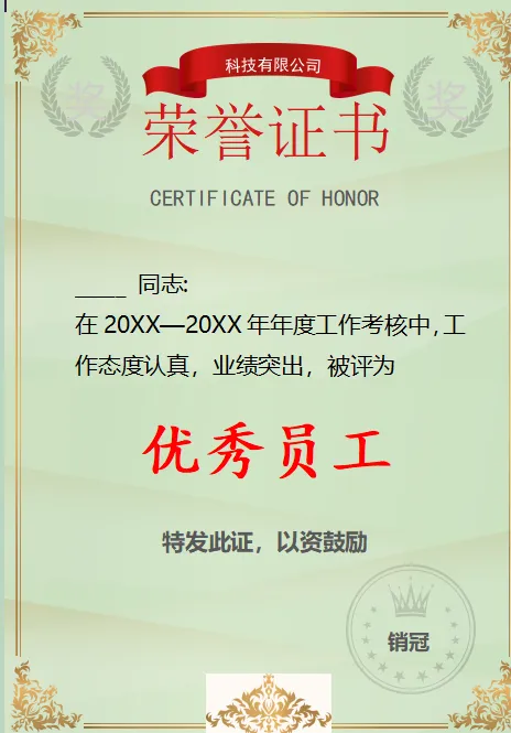 本文分享的是【荣誉证书奖状模板】