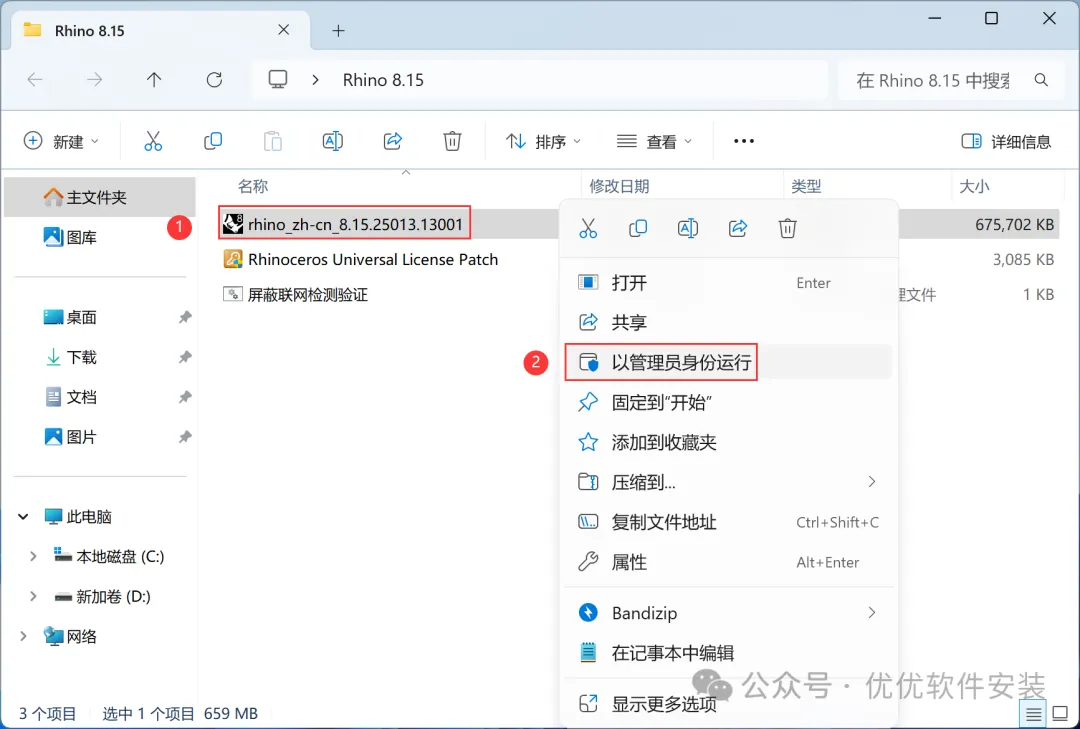 3、找到【rhino_zh-cn_8.15】应用程序,右键选择【以管理员身份运行】它