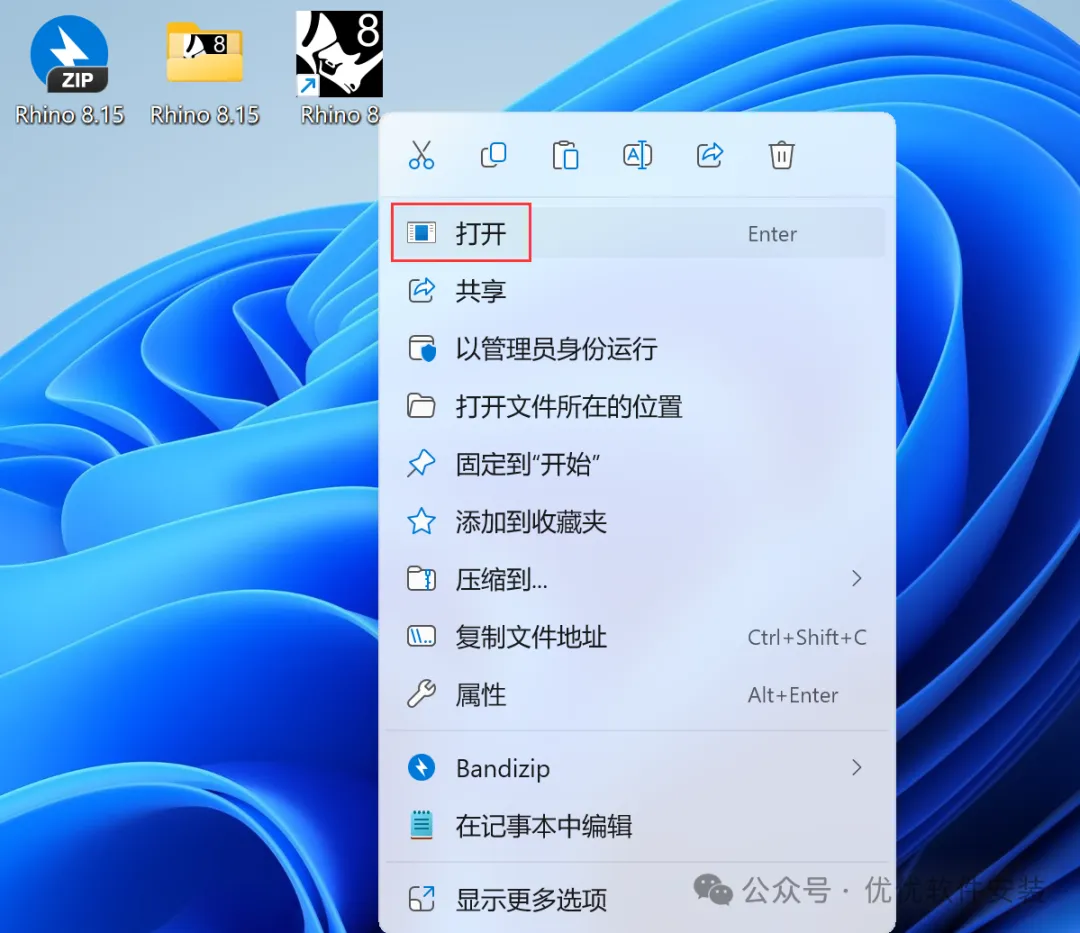 12、回到桌面,右键桌面上的【Rhino 8软件图标】,点击【打开】