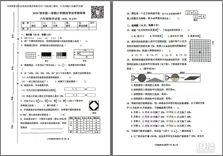 今天为大家准备的是家长上传的拱墅区小学数学的六年级上期末测试卷,获取试卷完整电子版pdf免费下载及参考答案分析请点击文中的小程序!