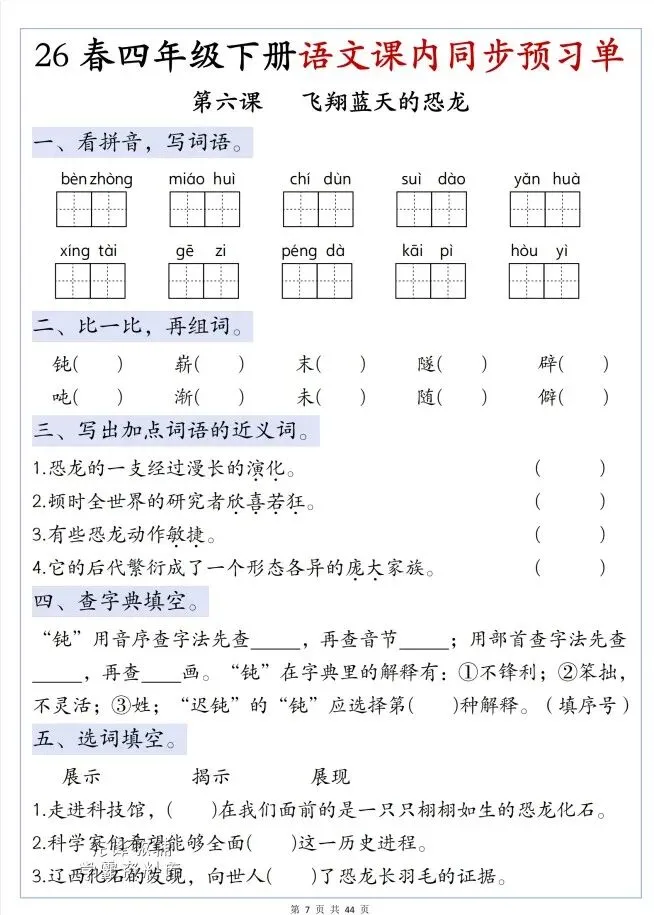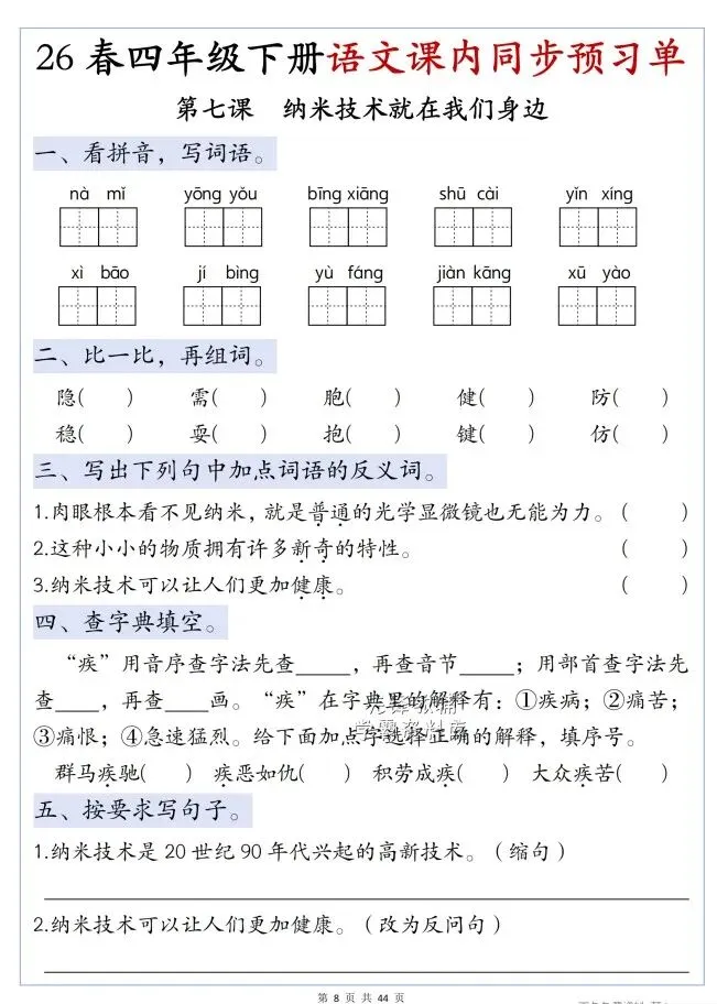 今天给大家整理了26春四年级下册语文第二单元寒假预习单,转发给朋友或班级群,受益更多人,帮助孩子学习!