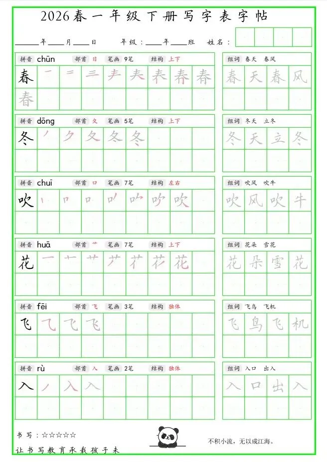 「26春 一下写字表笔顺组词字帖(绿色).pdf」链接:https://pan.quark.cn/s/fc420933a496