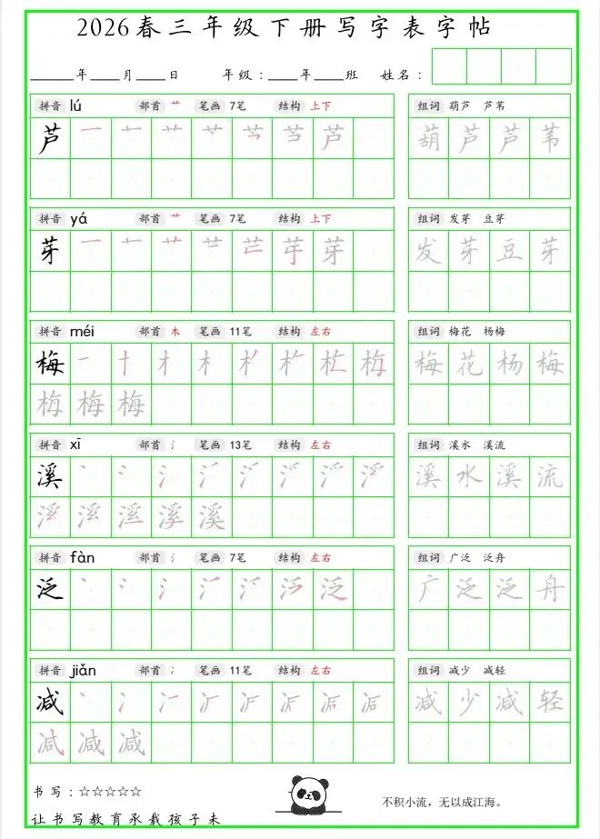 「26春 三下写字表笔顺组词字帖(绿色).pdf」链接:https://pan.quark.cn/s/30d4e32f5c76