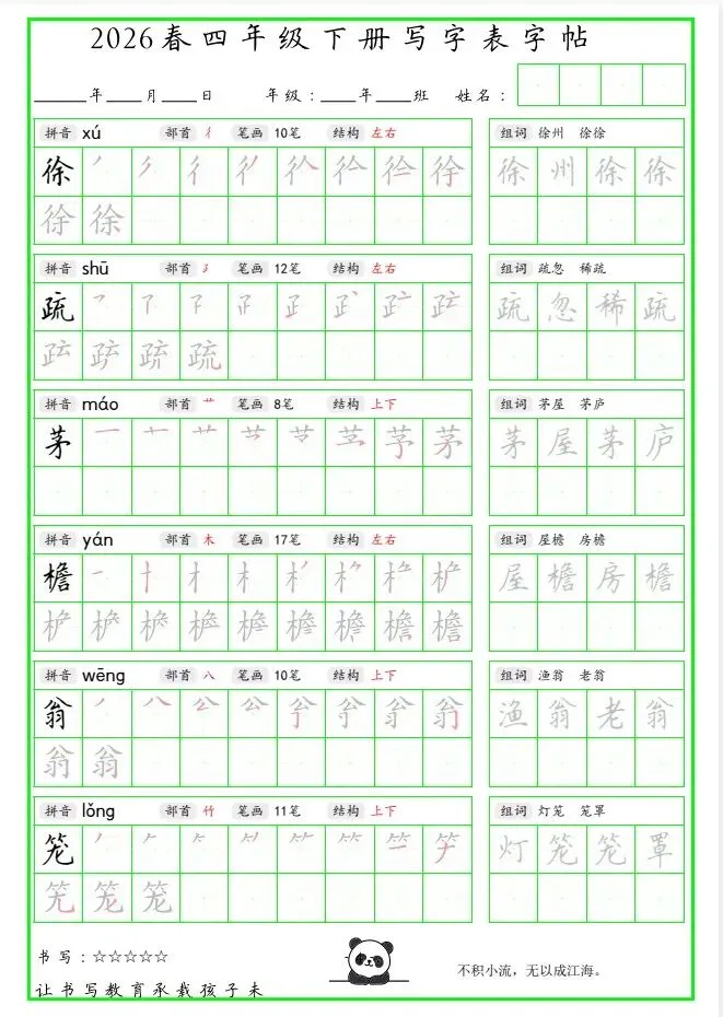 「26春 四下写字表笔顺组词字帖(绿色).pdf」链接:https://pan.quark.cn/s/bbded5d2a425