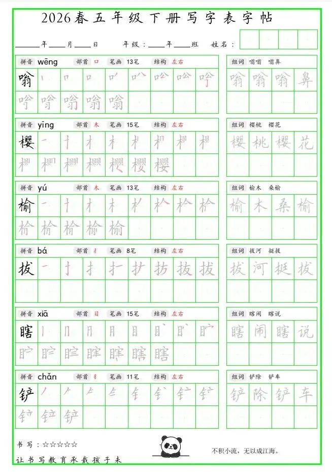 「26春 五下写字表笔顺组词字帖(绿色).pdf」链接:https://pan.quark.cn/s/53531628f6f4