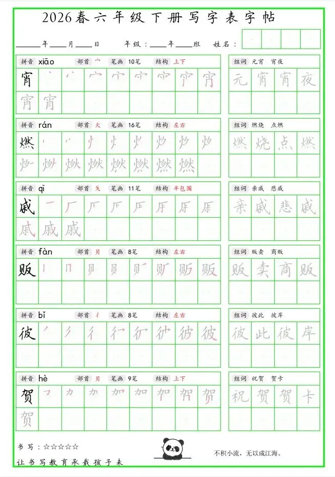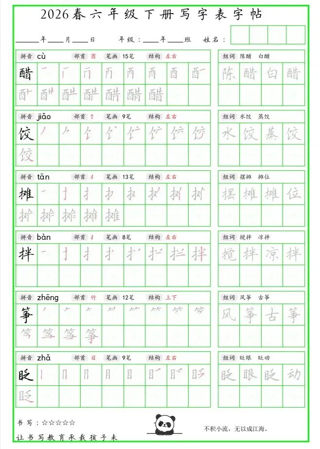 「26春 六下写字表笔顺组词字帖(绿色).pdf」链接:https://pan.quark.cn/s/a1092e47a271