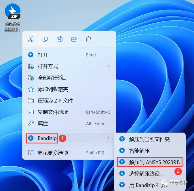 1、下载ANSYS 2023R1软件安装包到电脑上,右键选择【解压到ANSYS 2023R1\】