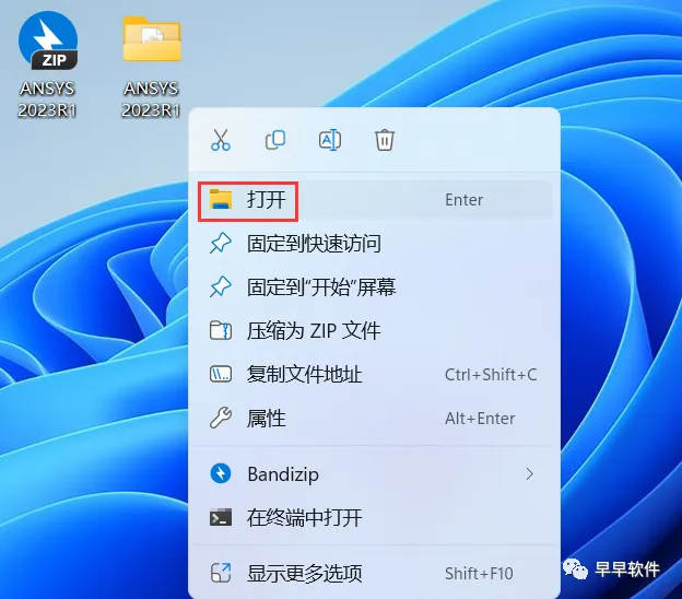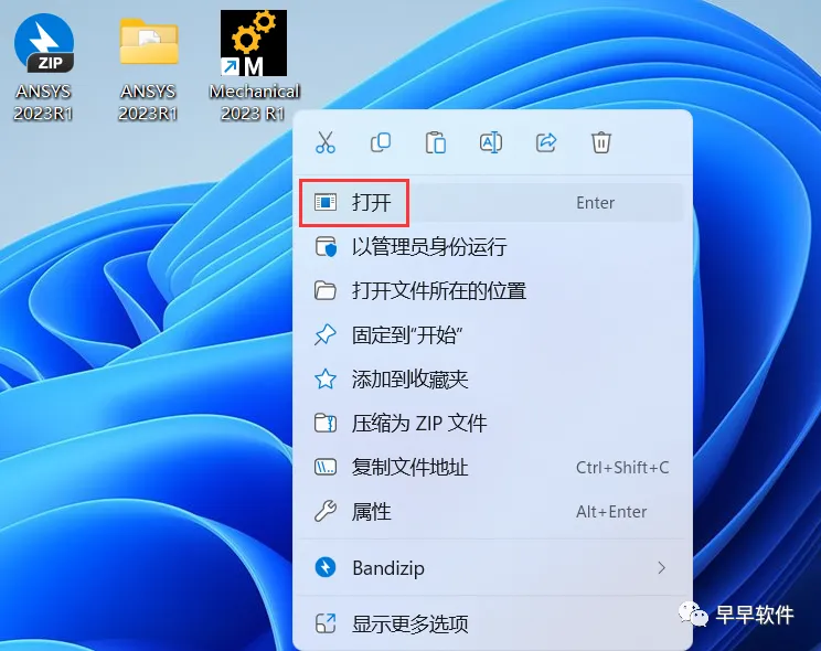 57、右键桌面上的【Mechanical 2023 R1软件图标】,点击【打开】