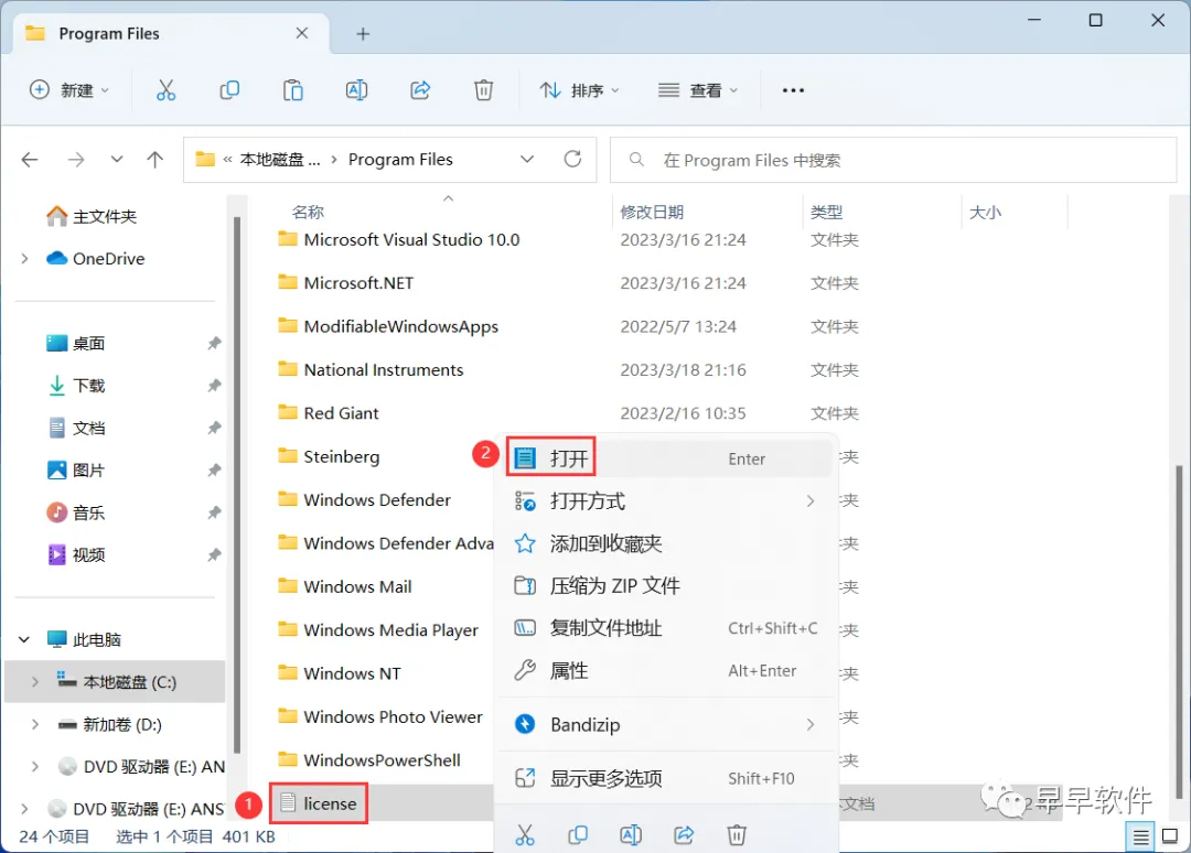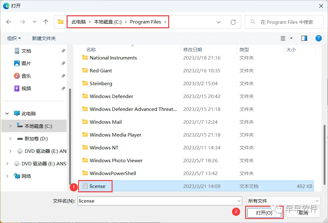 31、选中C盘下的Program Files文件夹下的license文档,再点击【打开】