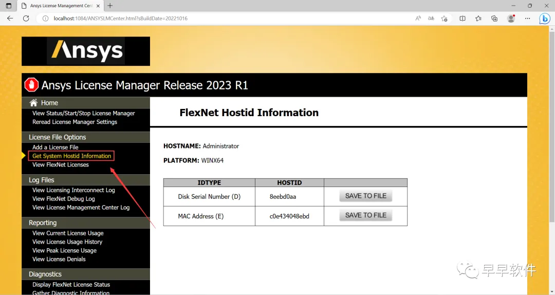22、自动打开浏览器界面,点击左侧的【Get System Hostid Information】
