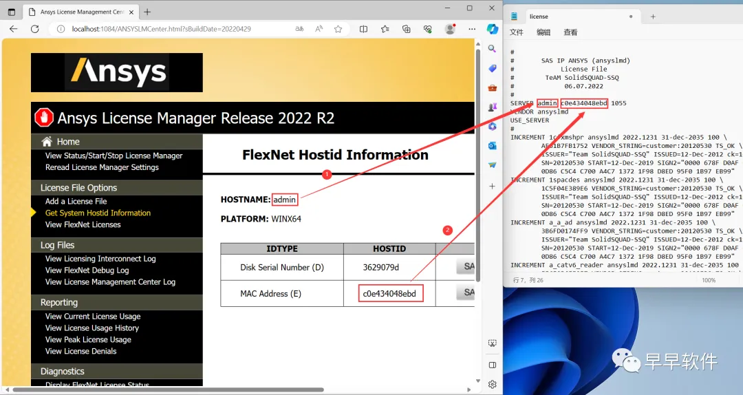 23、回到license文档,将xxxxxxxxxxxx替换成MAC Address(E)的HOSTID值