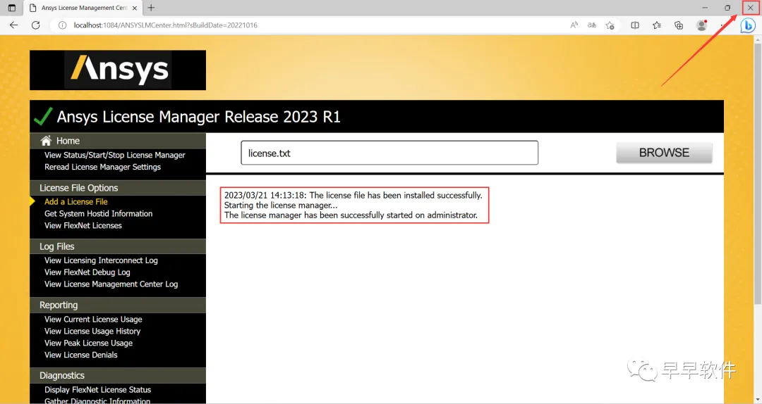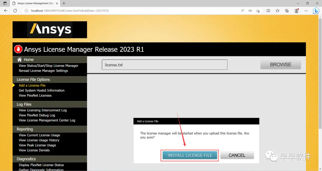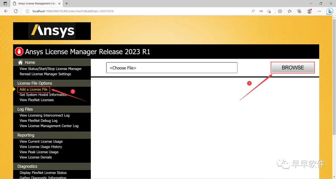 30、回到浏览器界面,点击左侧的【Add a License File】,再点击【BROWSE】