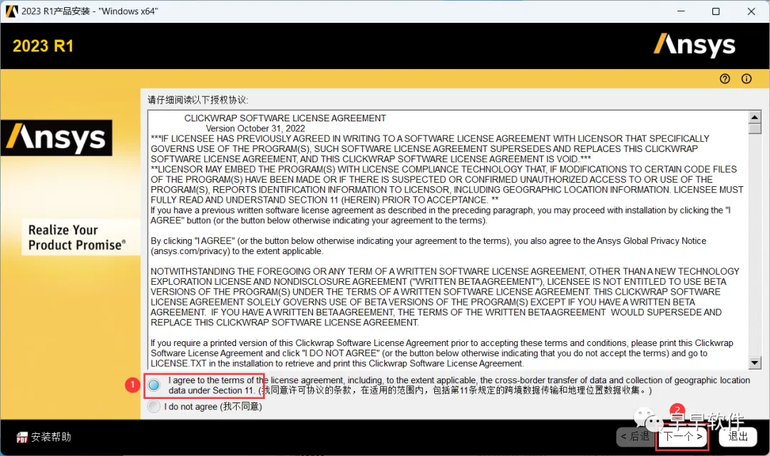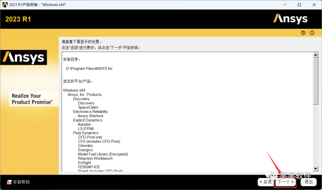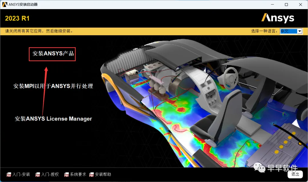 34、回到ANSYS 2023R1安装程序,点击【安装ANSYS产品】